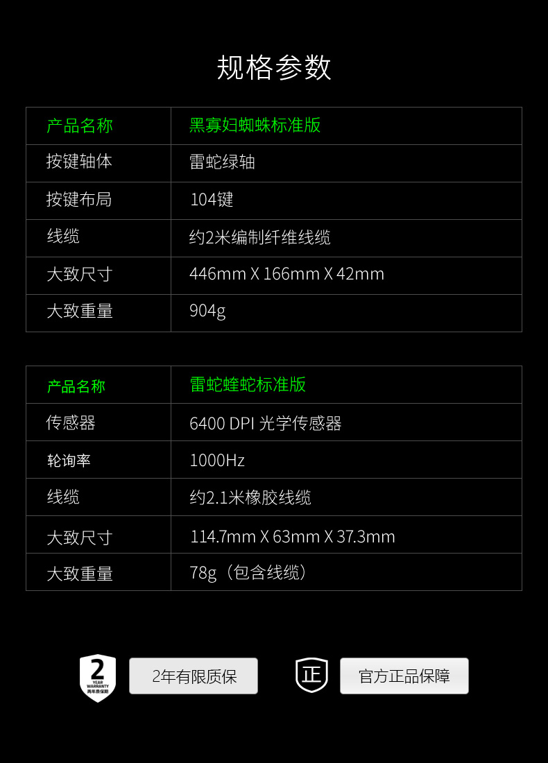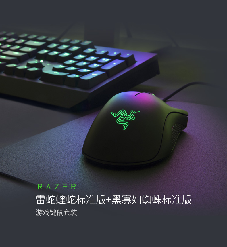 Razer雷蛇黑寡妇+蝰蛇鼠标绿背光机械键盘电竞游戏专用cf键鼠套装