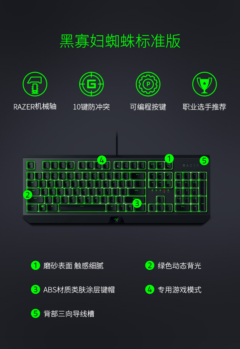 Razer雷蛇黑寡妇蜘蛛幻彩X竞技青轴吃鸡宏电竞游戏机械键盘