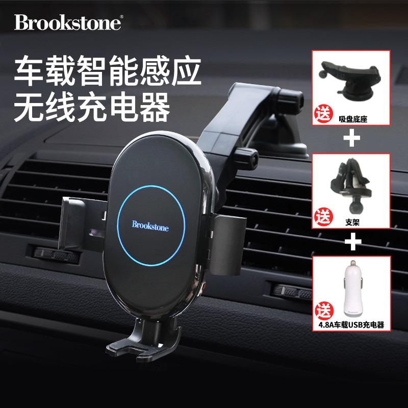 车载无线充电器车载支架卡扣式全自动自动感应车充苹果安卓手机通用车载快充充电器黑色