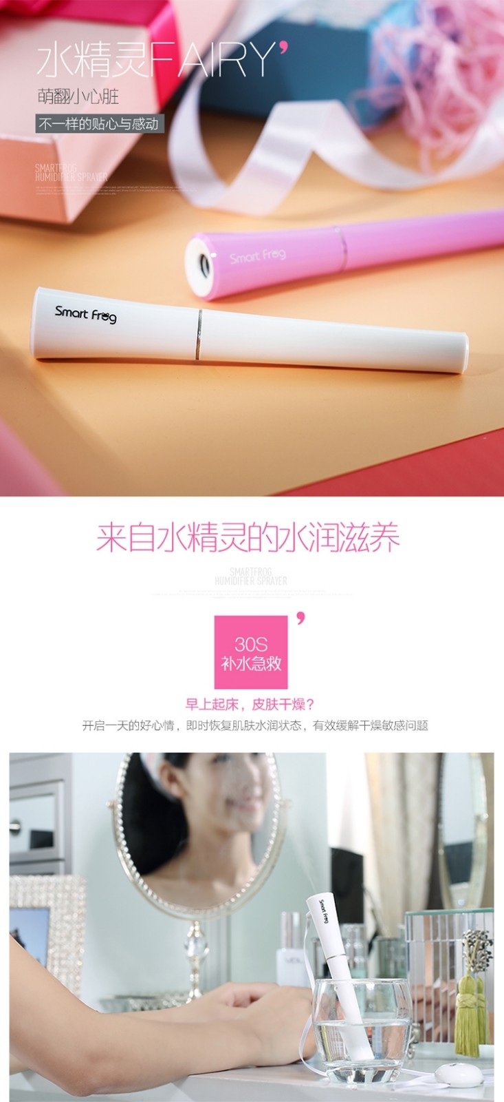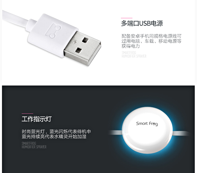 卡蛙 空气加湿器 水精灵 便携USB迷你小型随身携带旅行棒静音水杯矿泉水 瓶