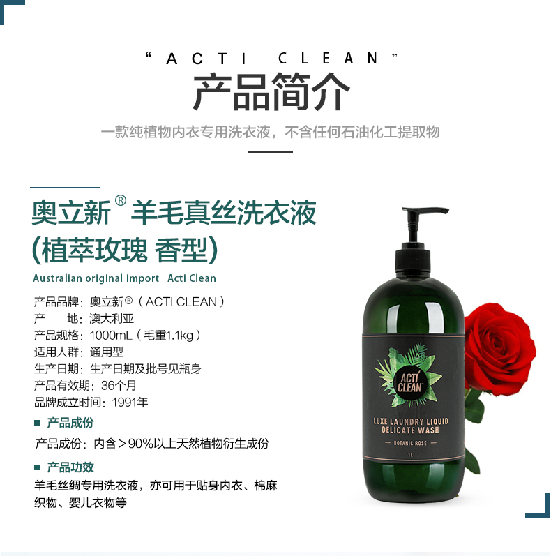 澳洲进口奥立新羊毛真丝植萃洗衣液1L蓬松舒柔防缩水防起球抗静电