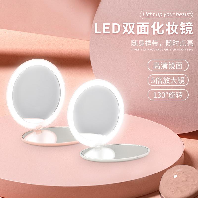 化妆镜led镜子便携灯带补光手持随身折叠美妆小ins双面充电amiro