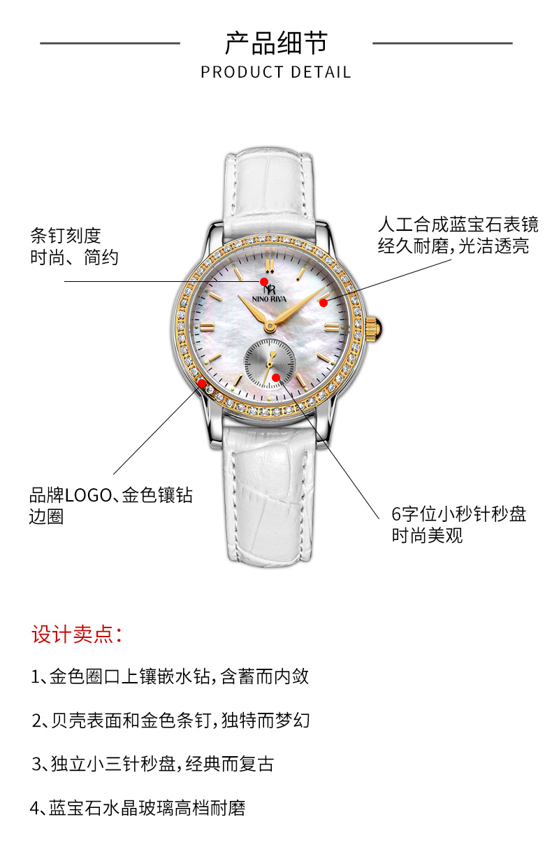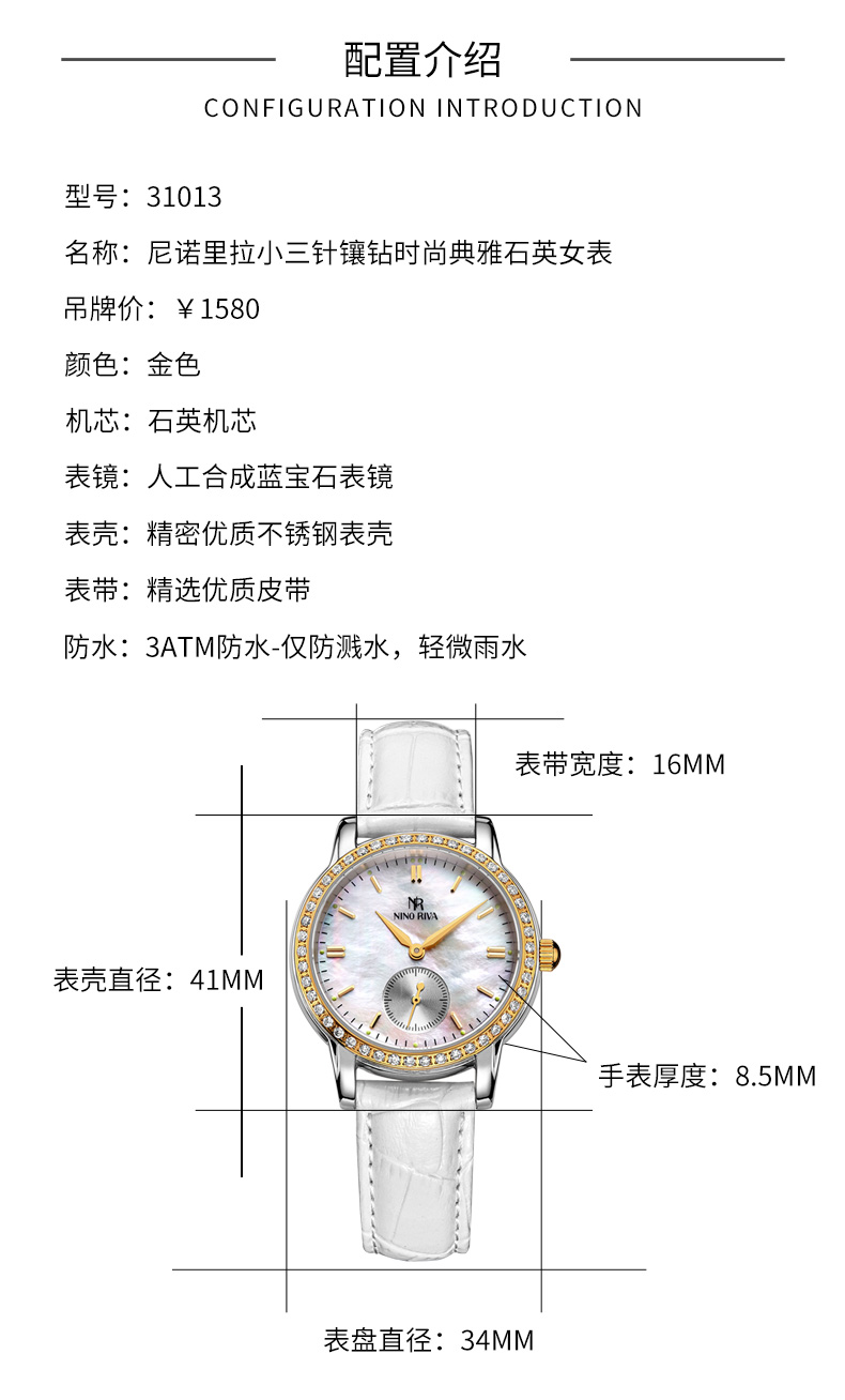 尼诺里拉 小三针镶钻时尚典雅石英女表