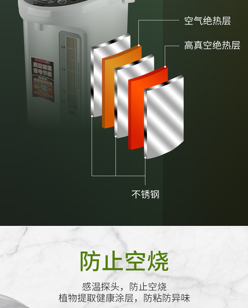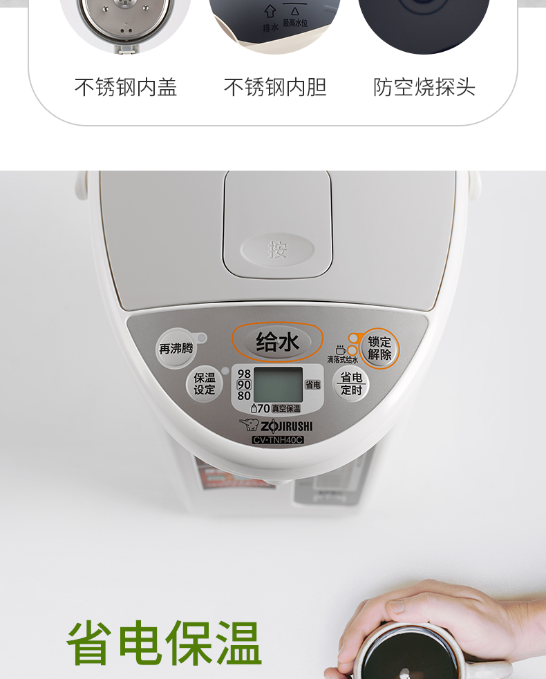 象印ZOJIRUSHI电热水瓶 CV-TNH30C 家用真空保温电水壶烧水壶3L