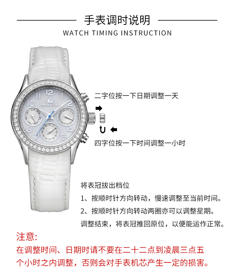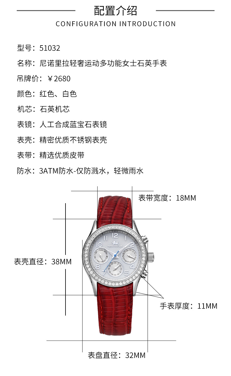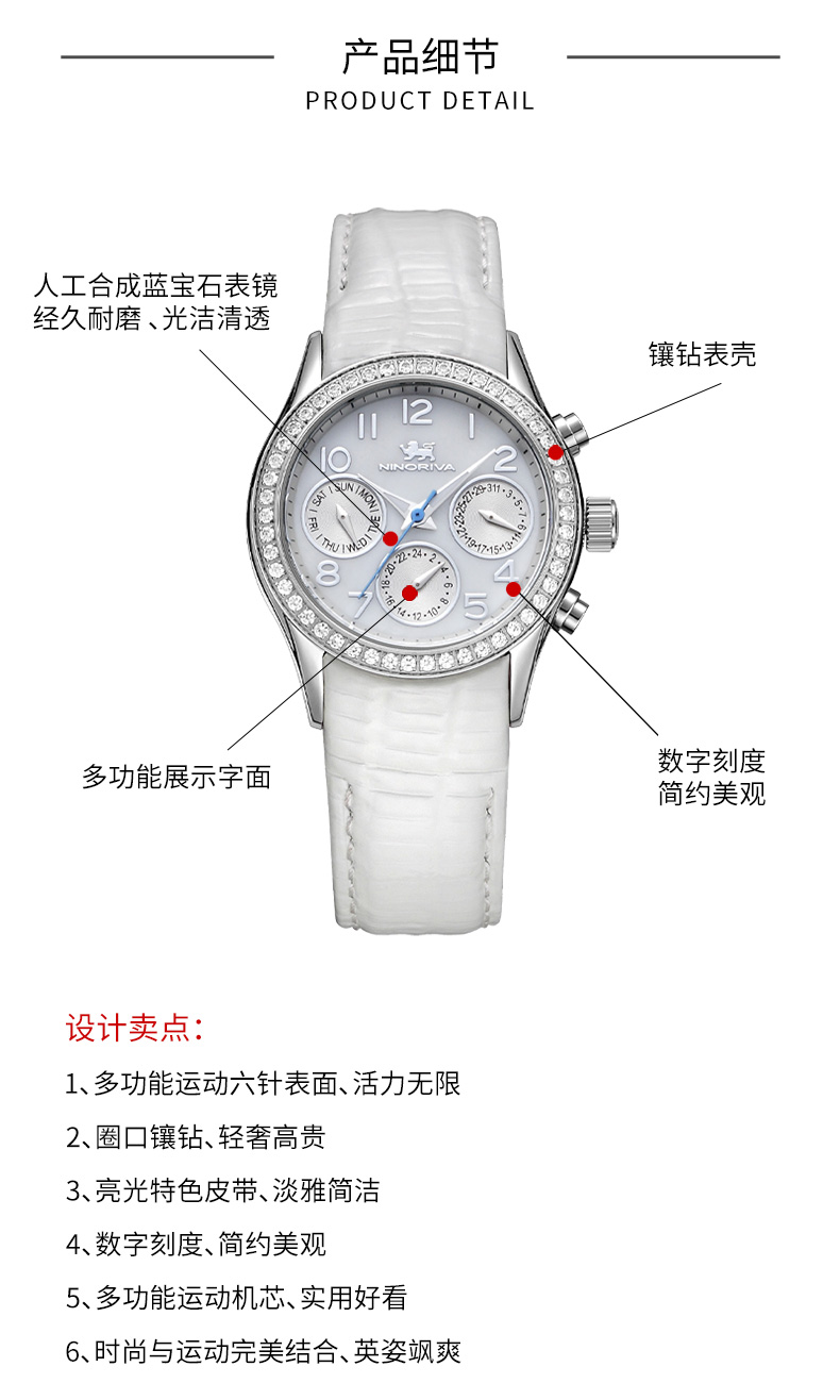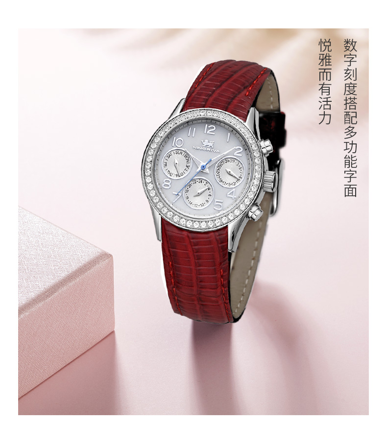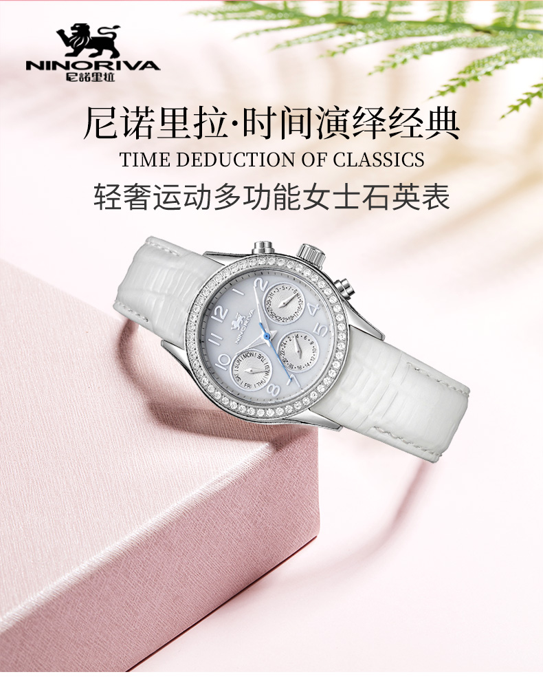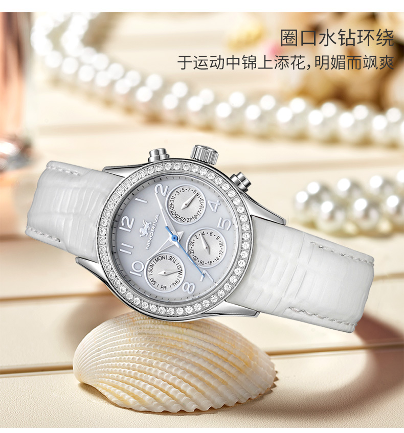 尼诺里拉 轻奢运动多功能女士石英手表