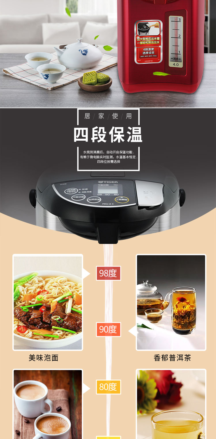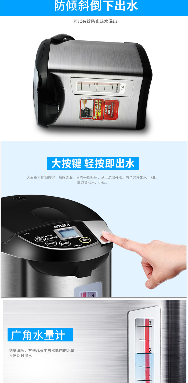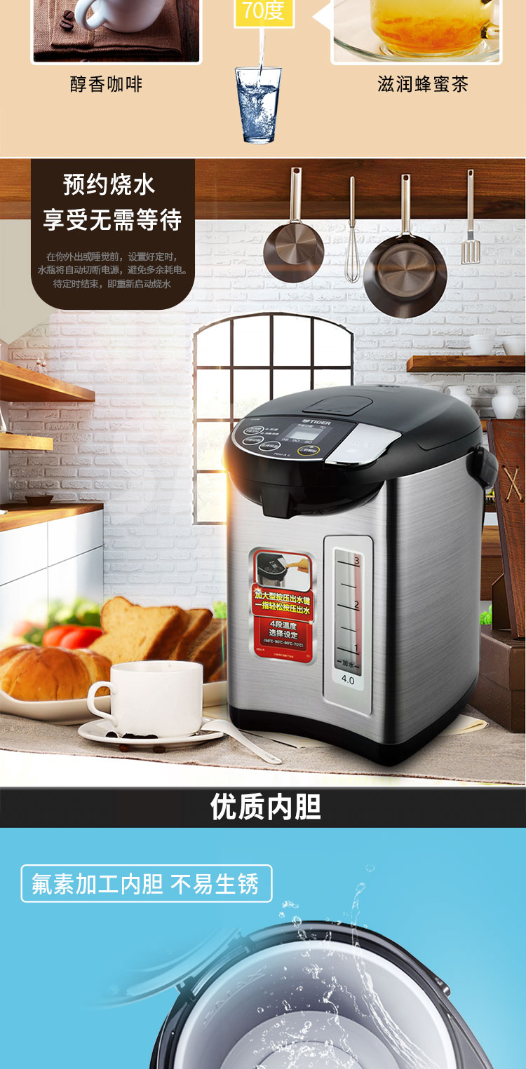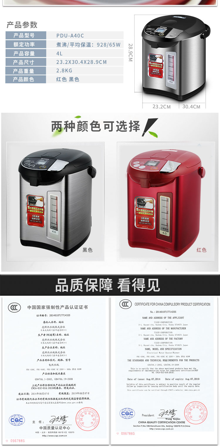 虎牌Tiger电热水瓶智能控温电热水壶日本原装进口 PDU-A40C 4L