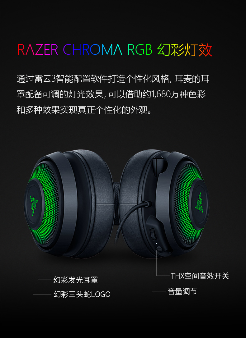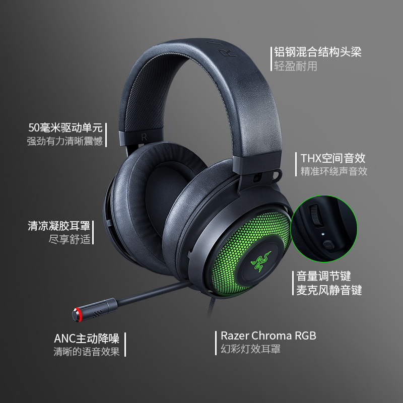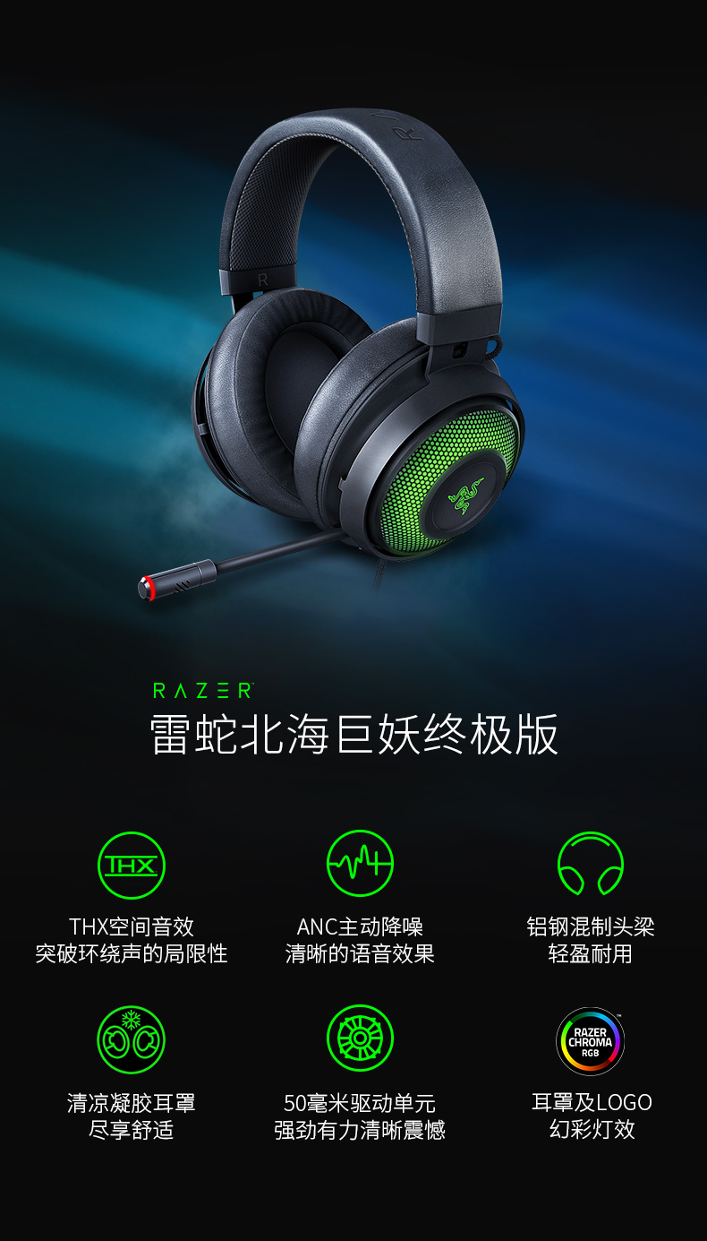 Razer雷蛇北海巨妖终极版RGB头戴式7.1电竞游戏USB耳麦cf吃鸡耳机
