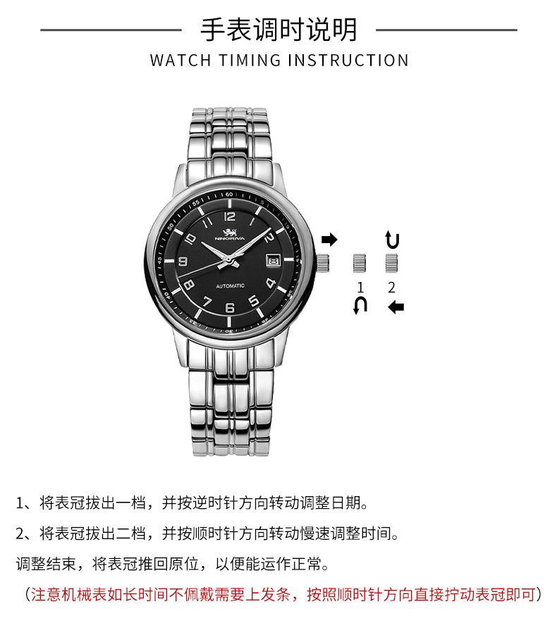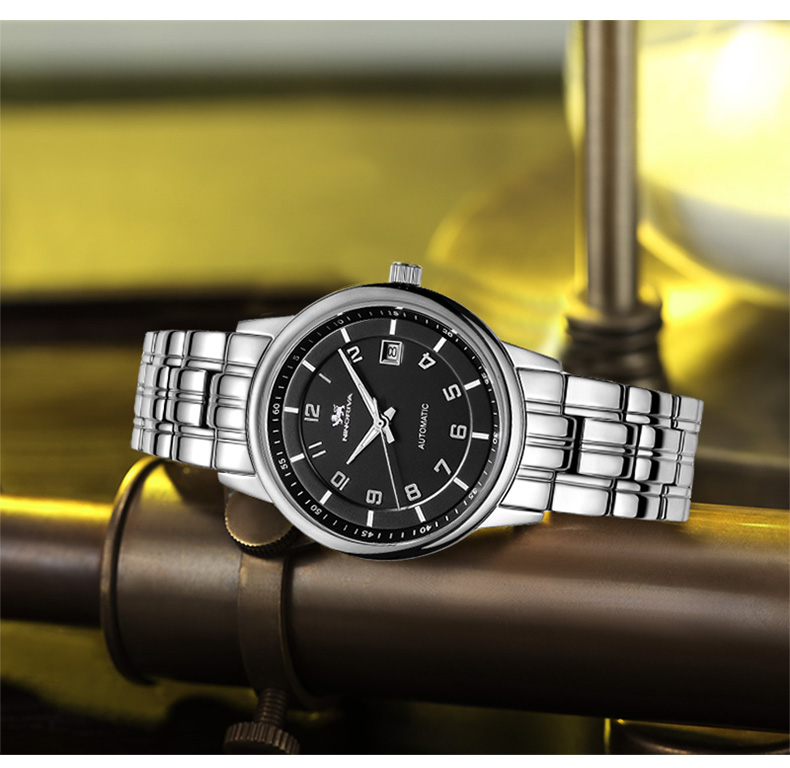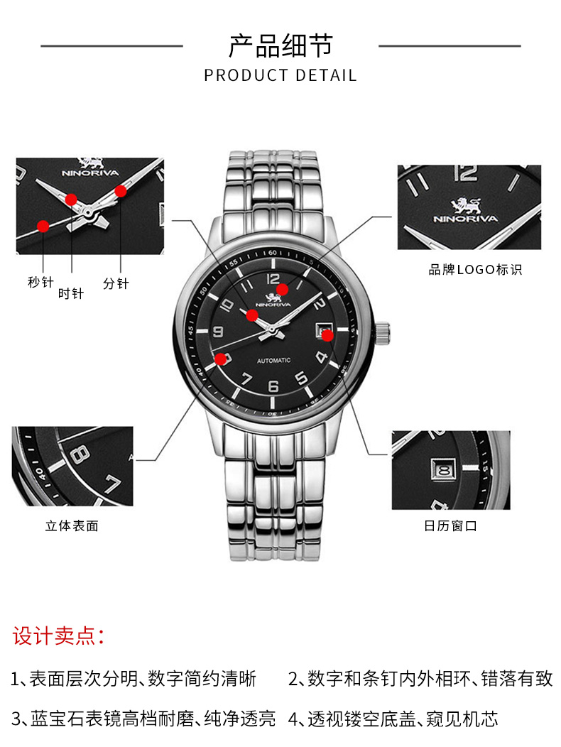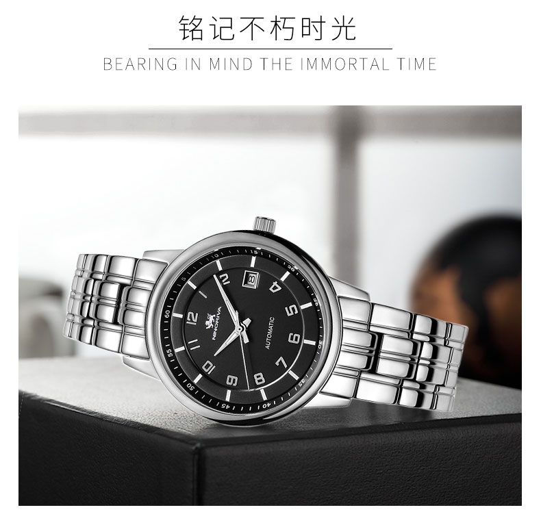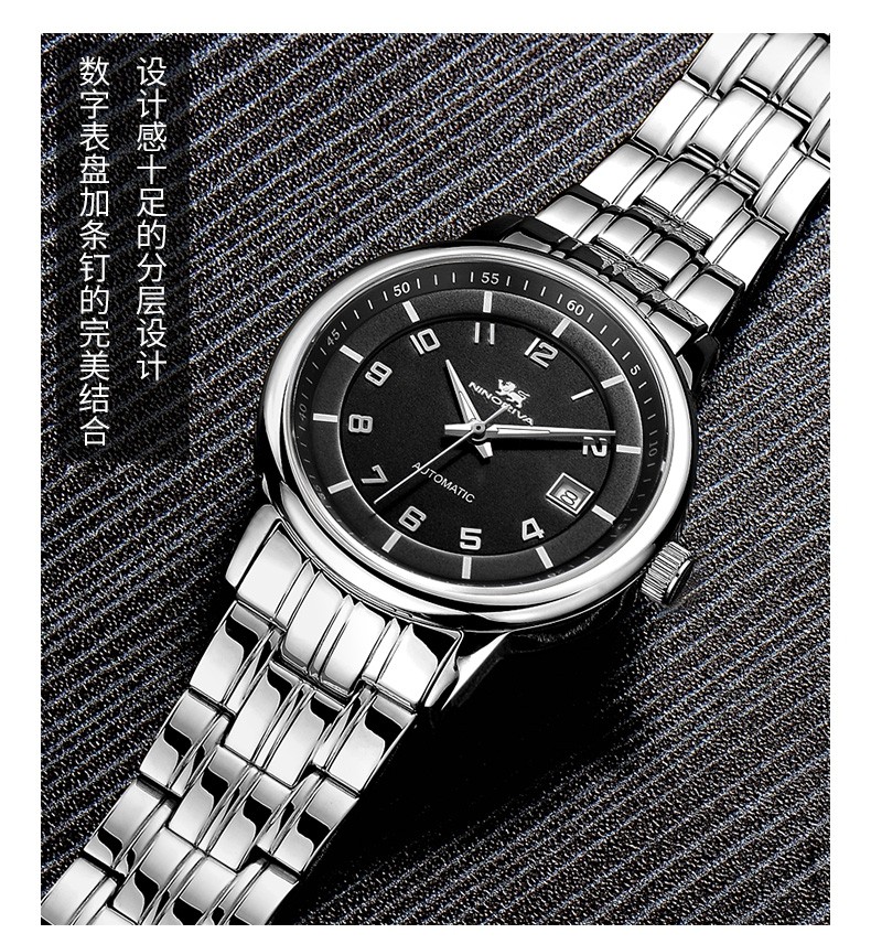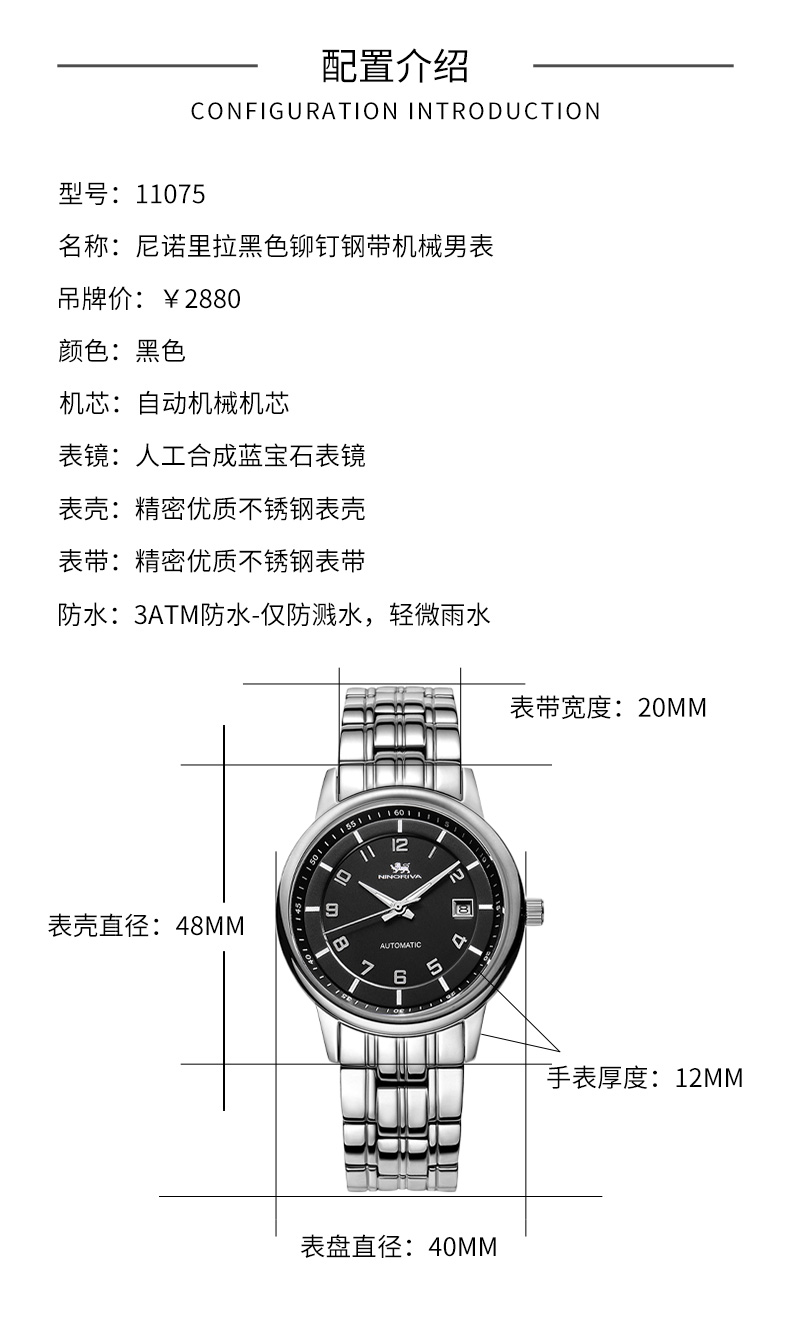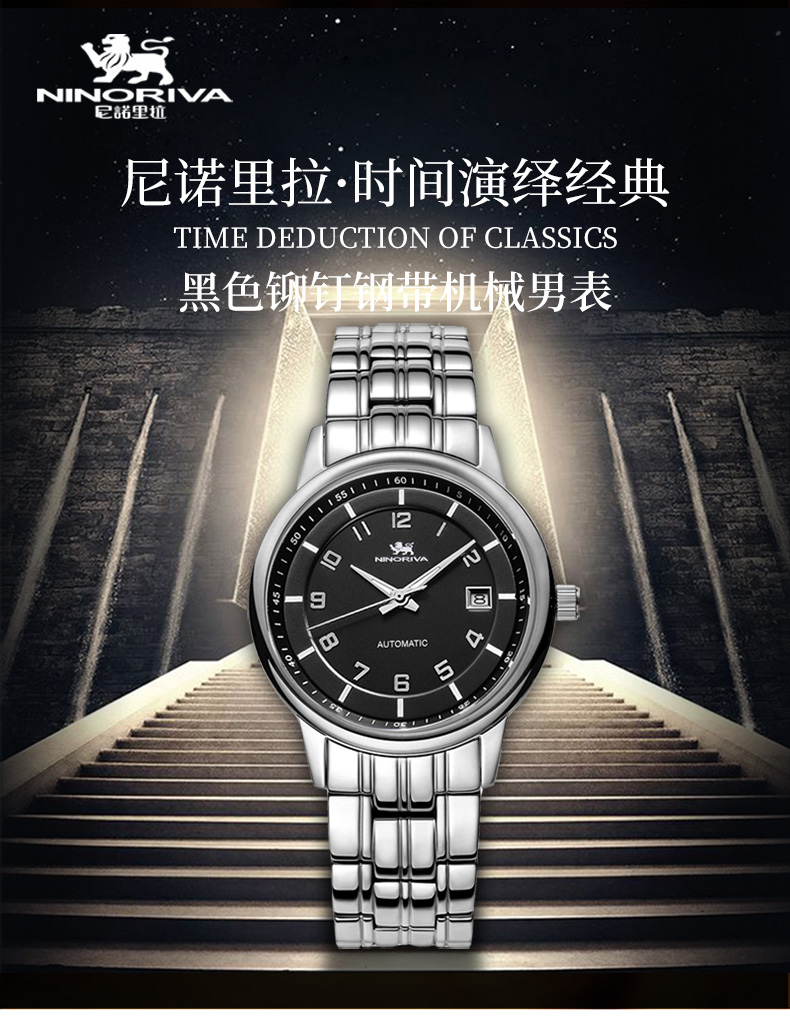 尼诺里拉 黑色铆钉钢带机械男表