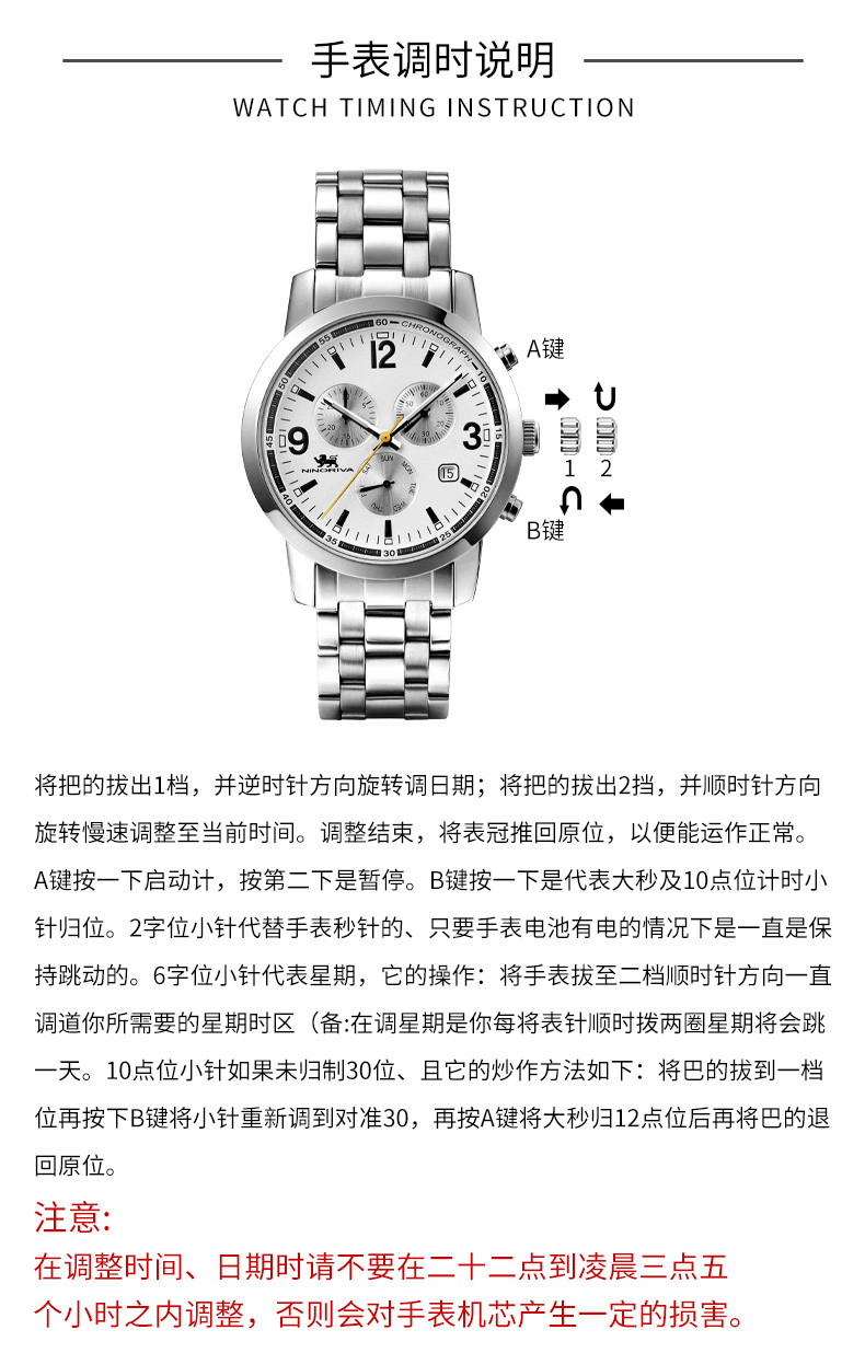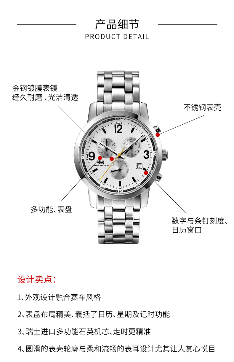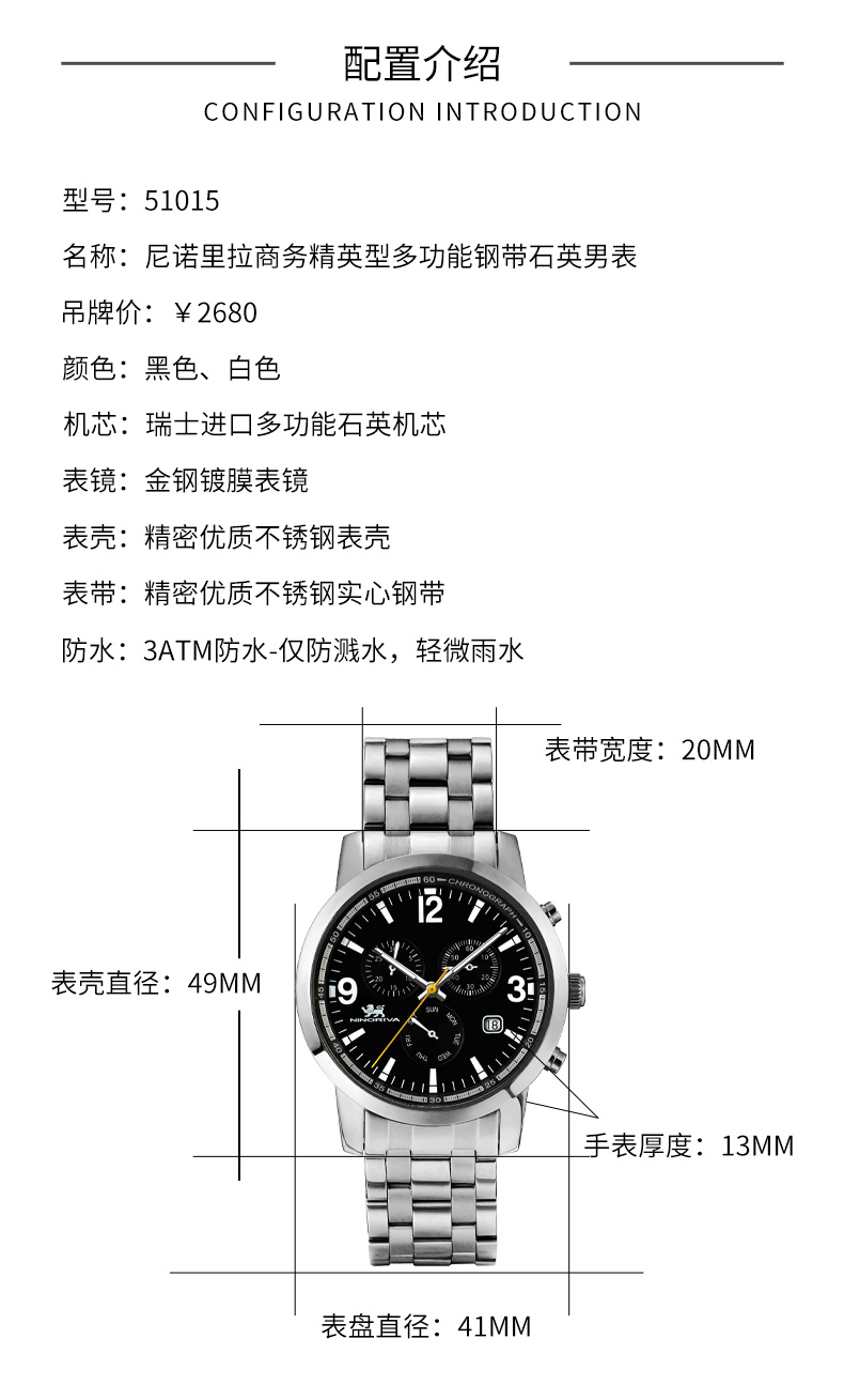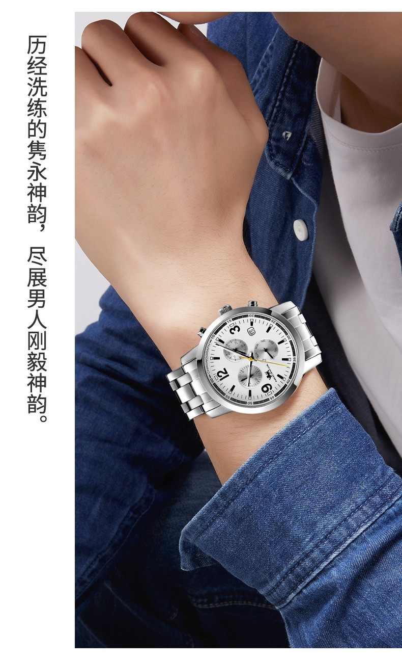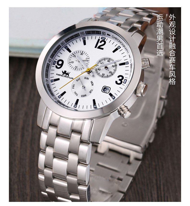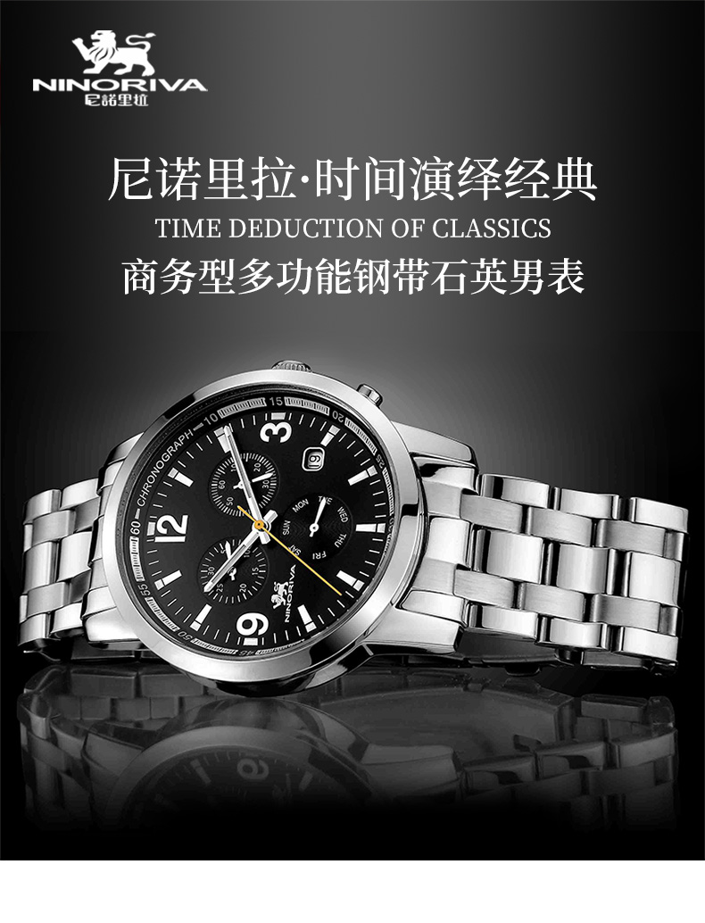 尼诺里拉 商务精英型多功能钢带石英男表