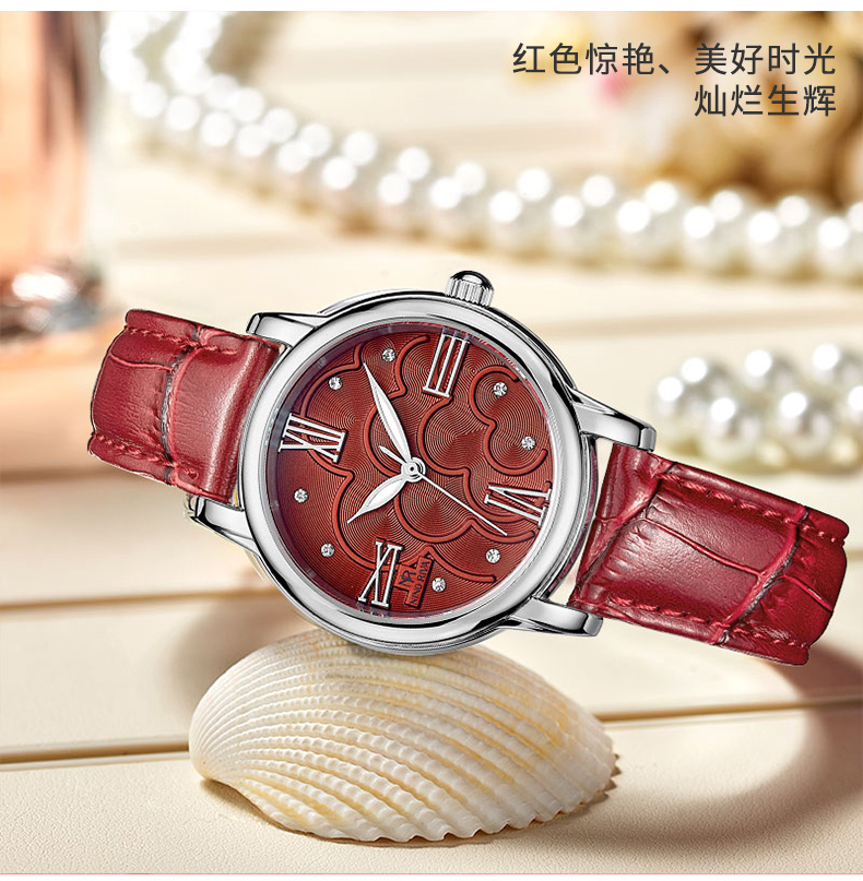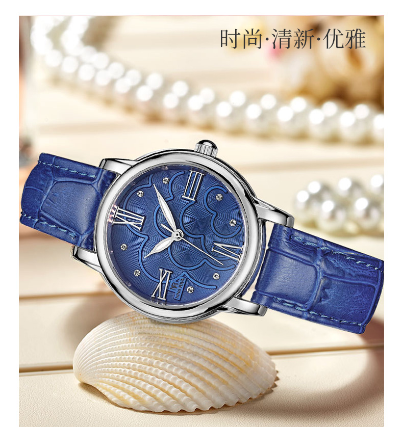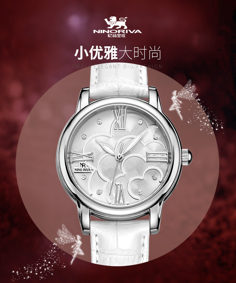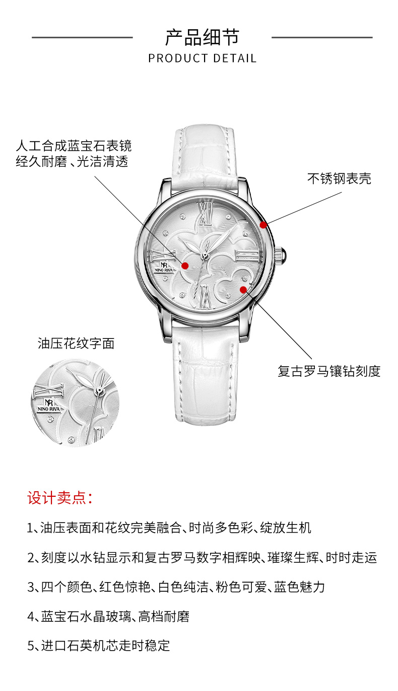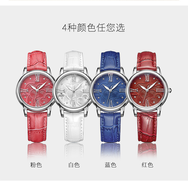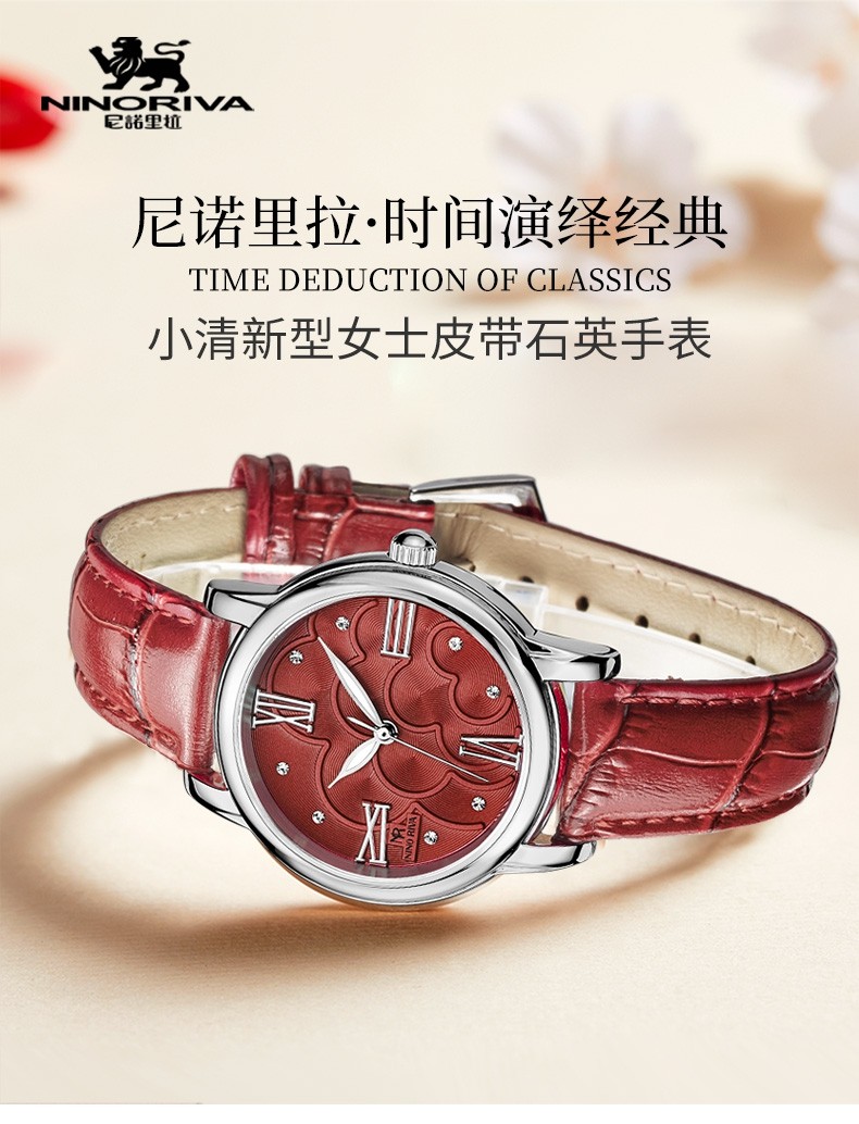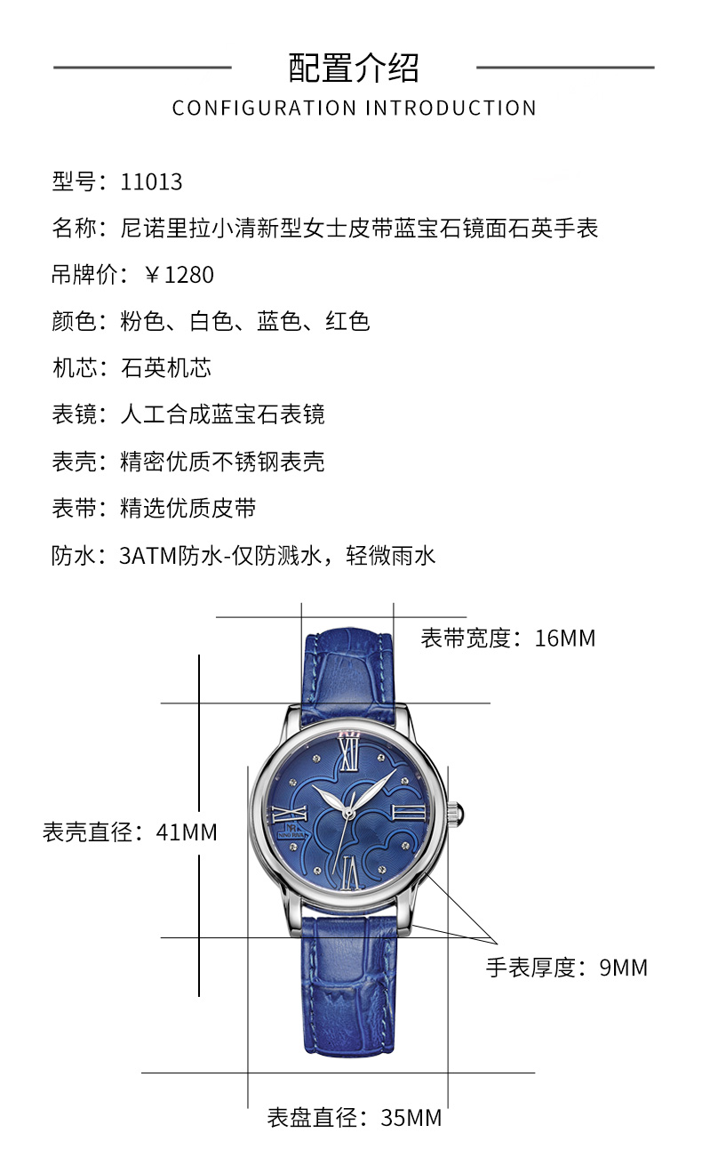 尼诺里拉 小清新型女士皮带蓝宝石镜面石英手表 四色可选