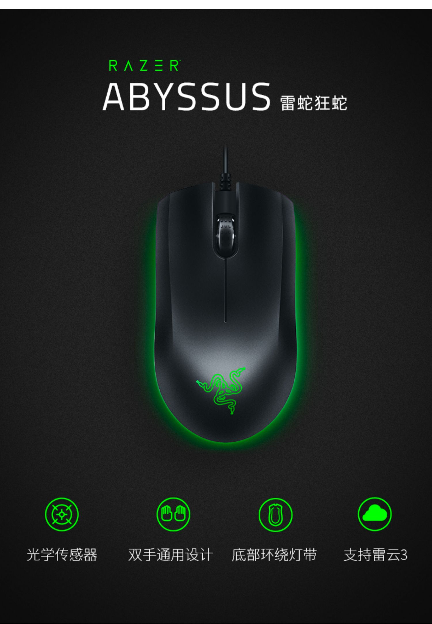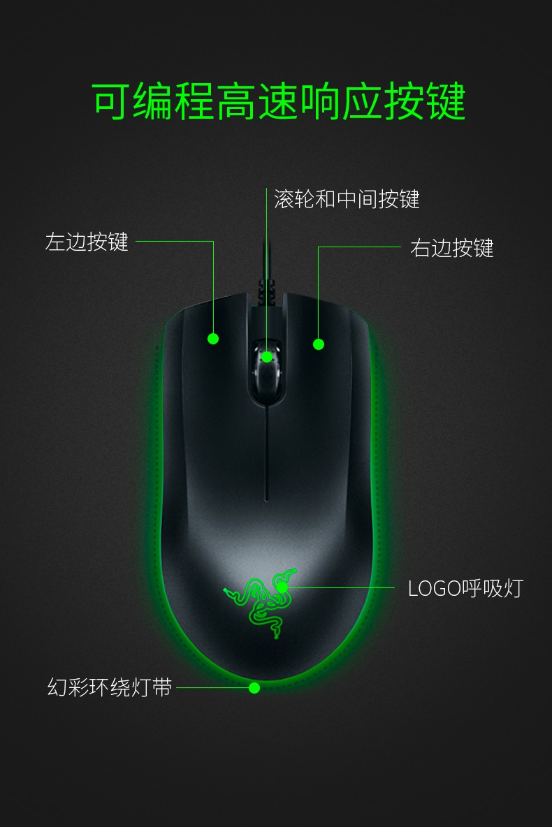Razer 雷蛇地狱狂蛇CF电竞电脑有线游戏吃鸡神器男女家用办公鼠标