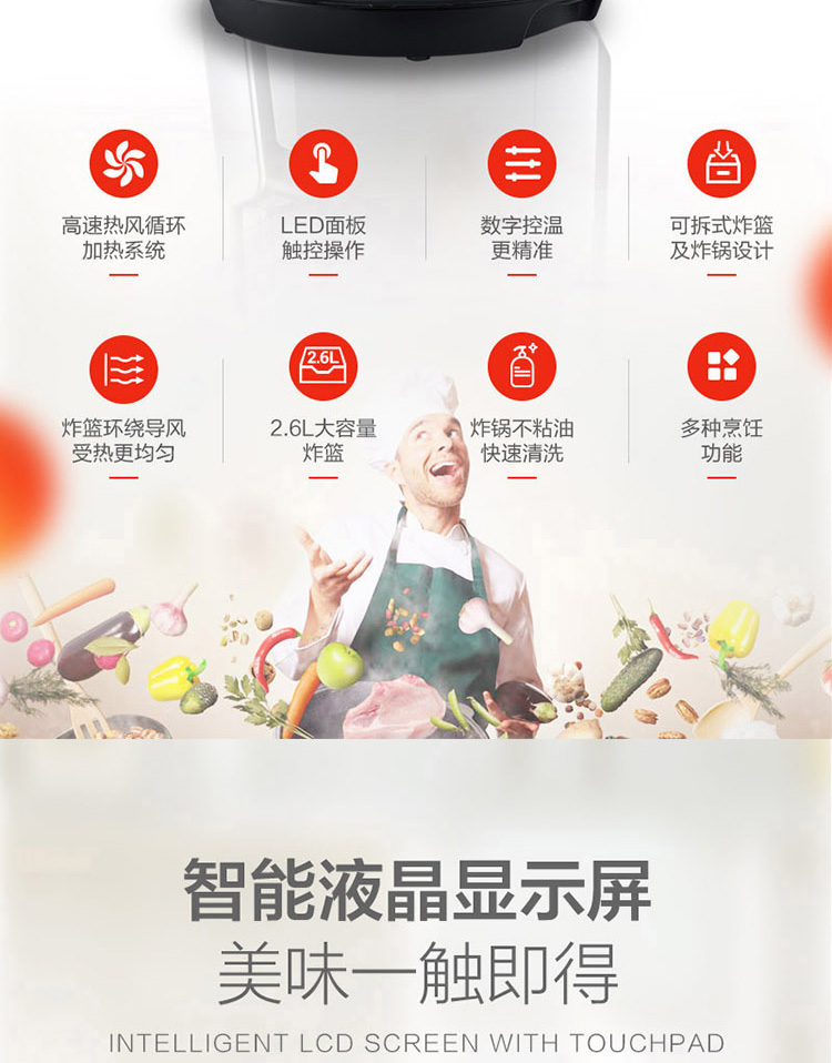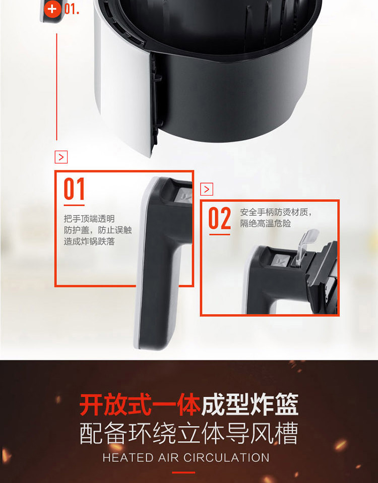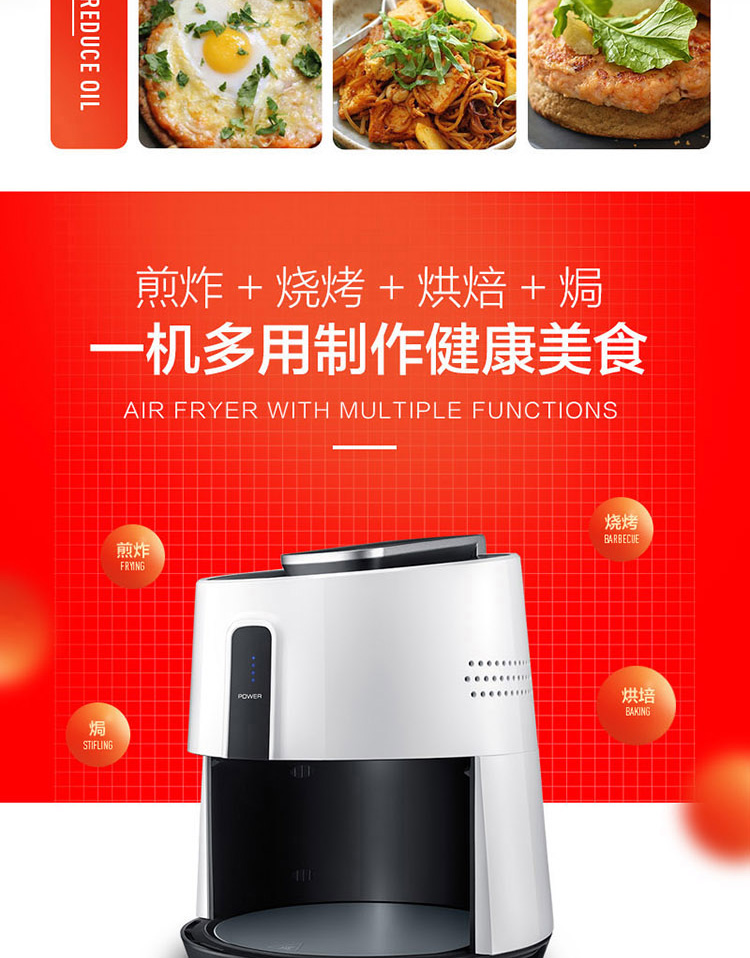 大宇(DAEWOO)家用空气炸锅薯条机无油炸鸡翅易清洗DYKZ-012