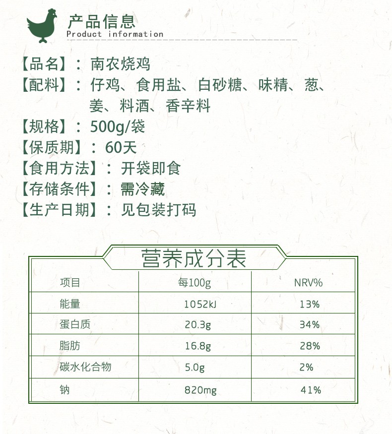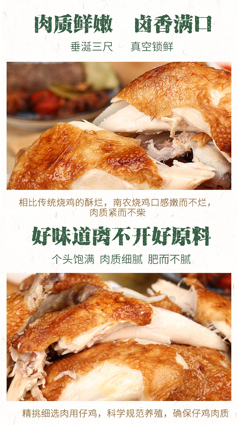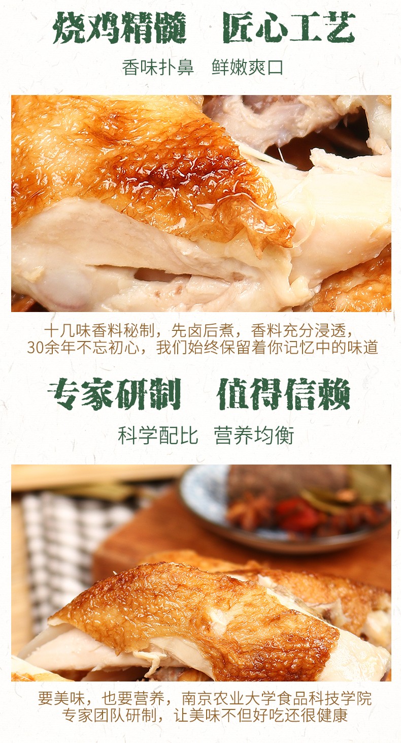 南农烧鸡 南京特产 风味酱卤熟食节日送礼手撕烧鸡扒鸡烤鸡叫花鸡五香酥鸡整只1只装 拆开即食真空包装 烧鸡500g