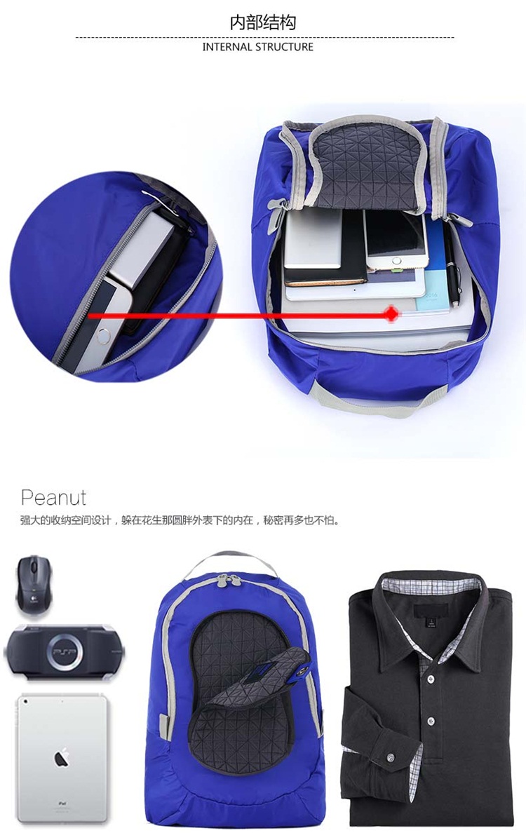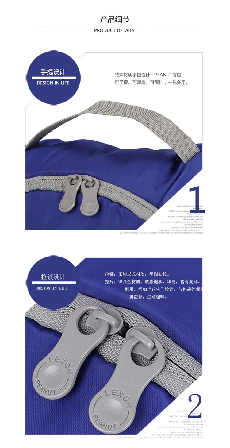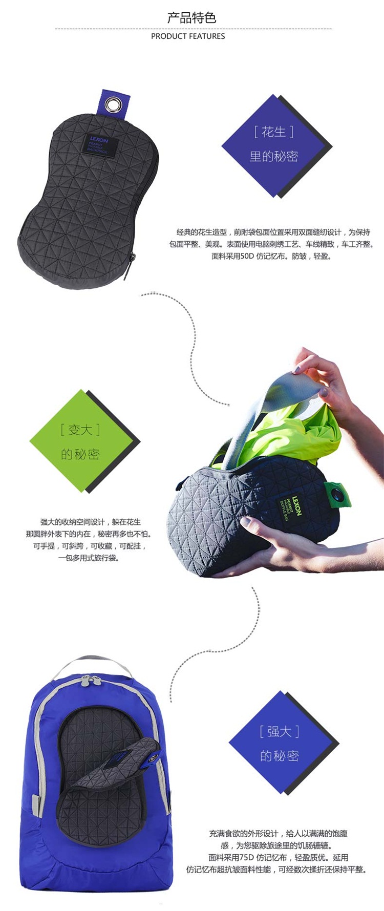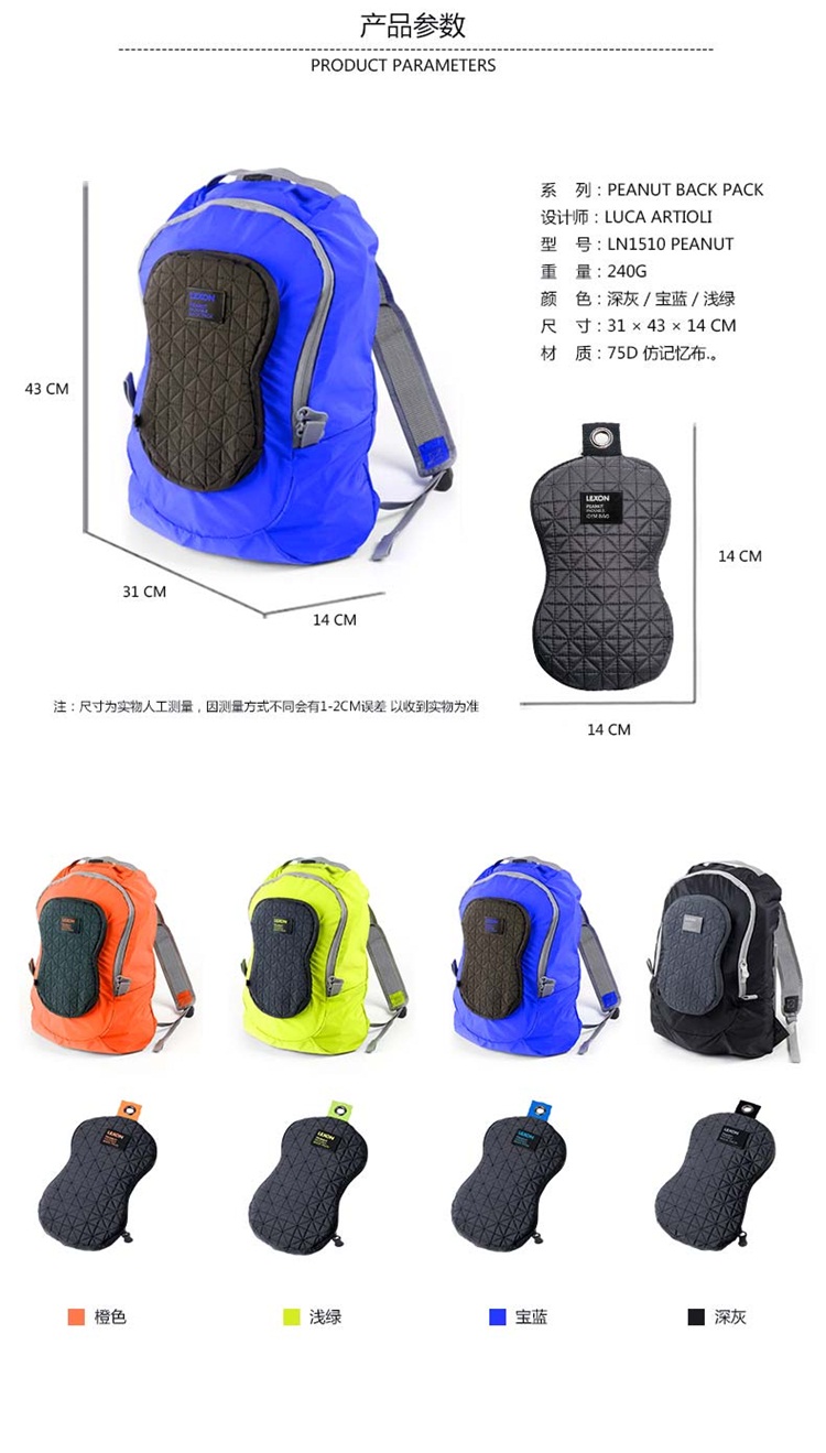法国乐上LEXON双肩包男女款休闲运动收纳包花生包折叠背包LNR1510