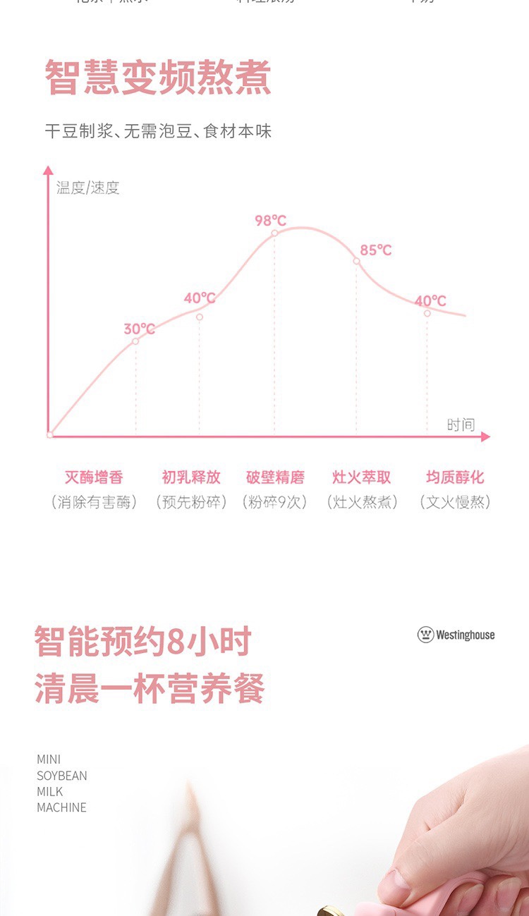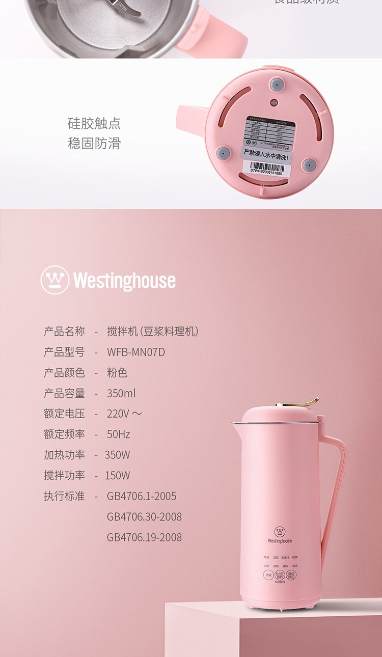 西屋Westinghouse迷你豆浆机WFB-MN07D多功能破壁打汁料理浓汤茶
