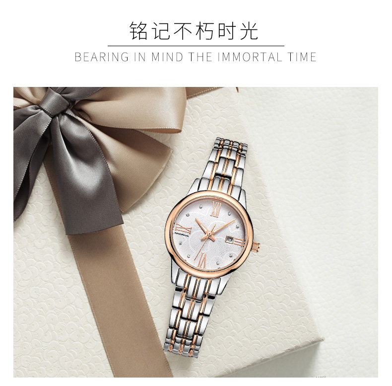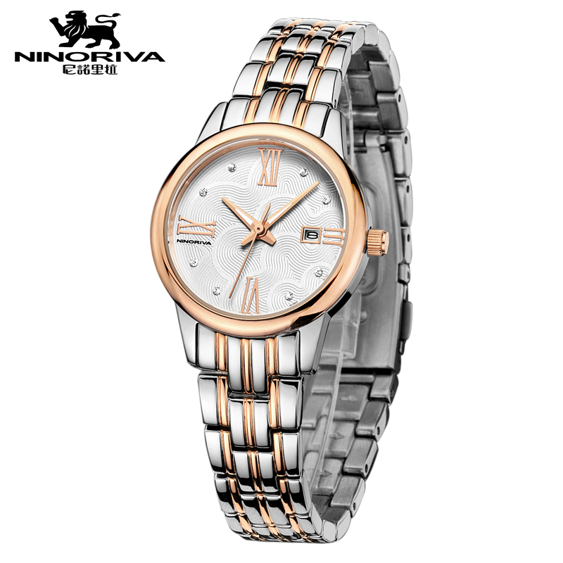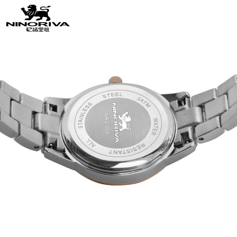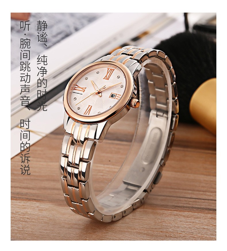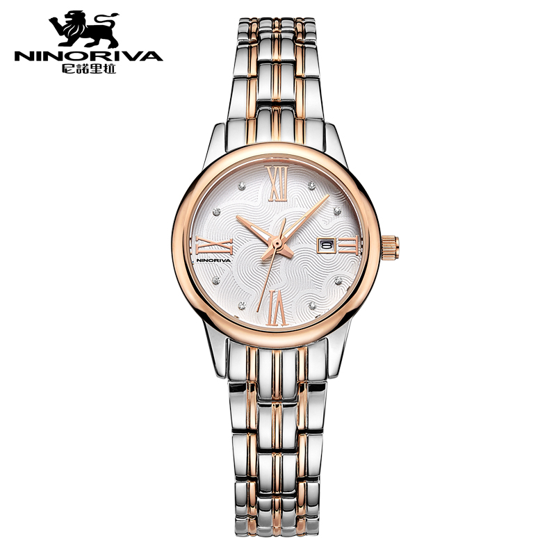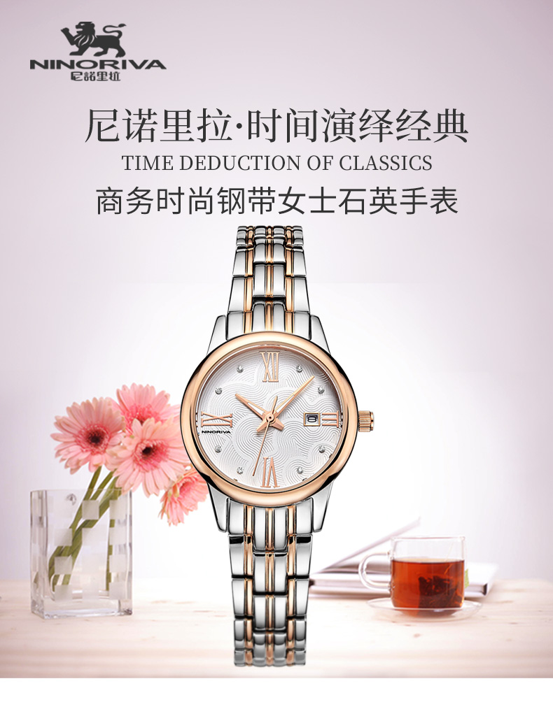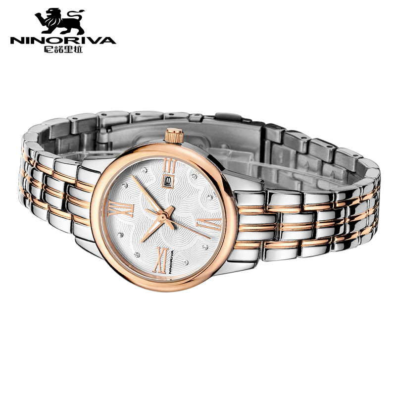 尼诺里拉 商务时尚钢带女士石英手表 玫瑰金色钢带