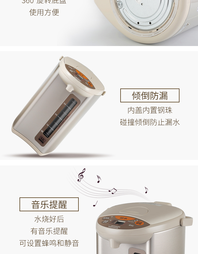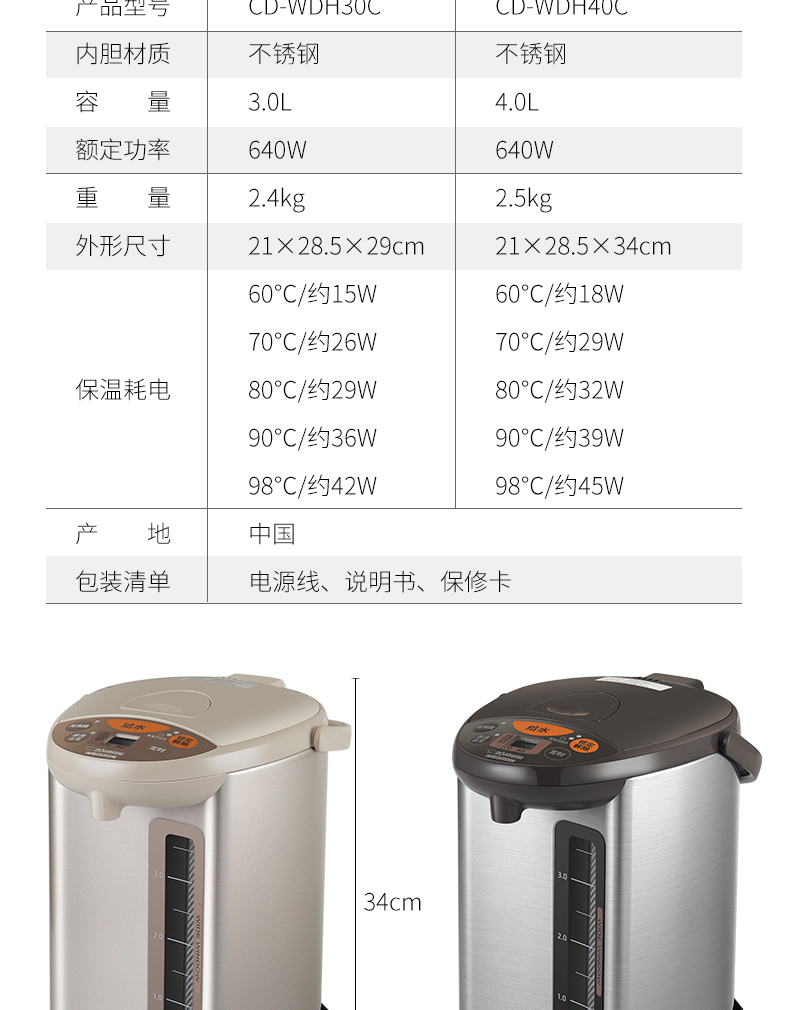 象印ZOJIRUSHI电热水瓶 CD-WDH30C 日本象印家用加热支持电动出水电热水壶