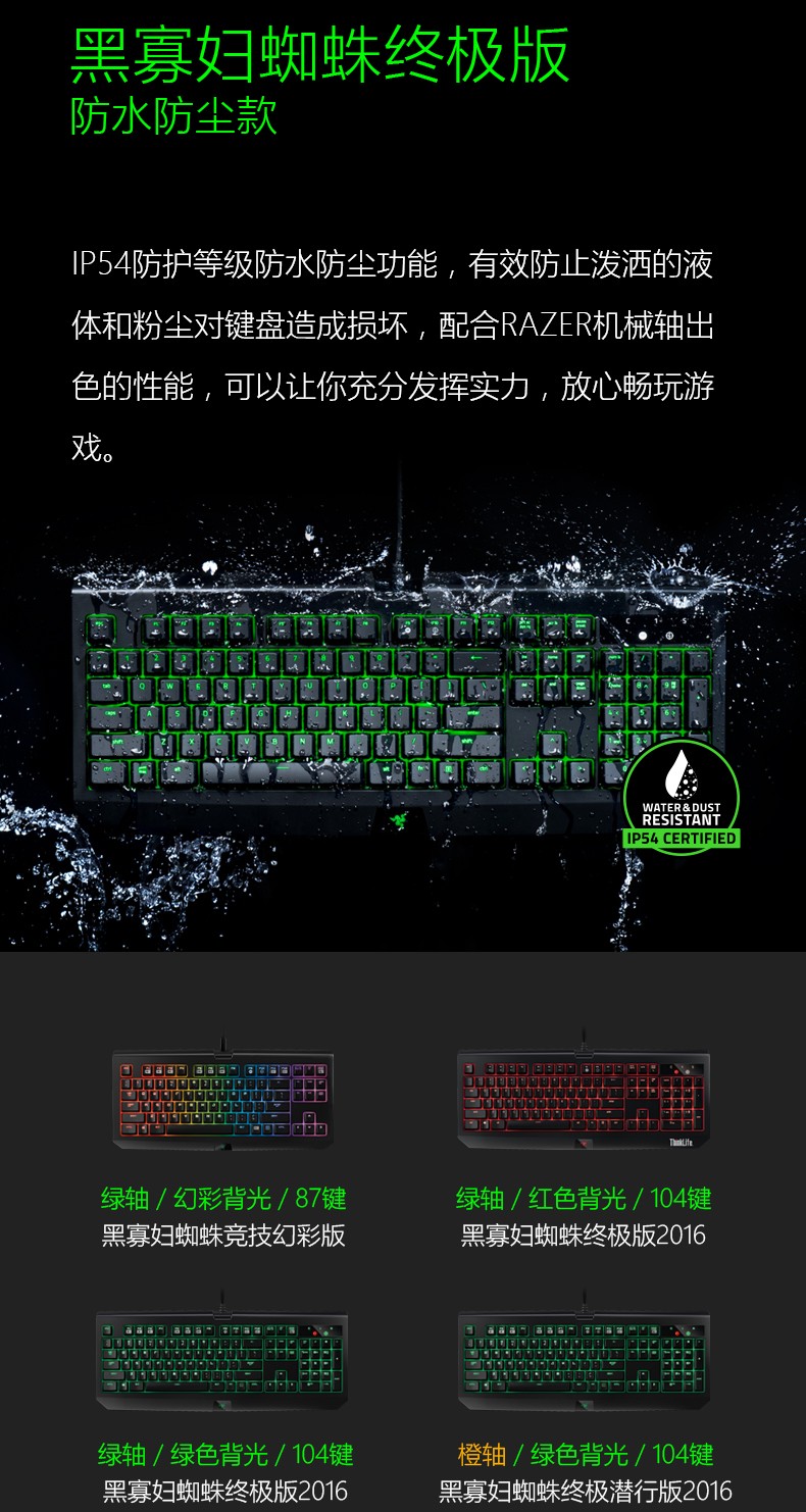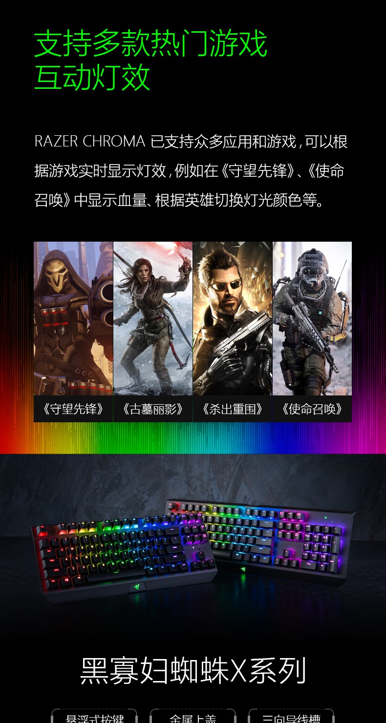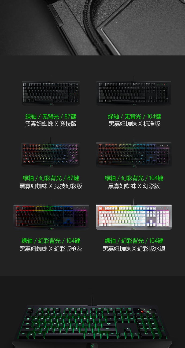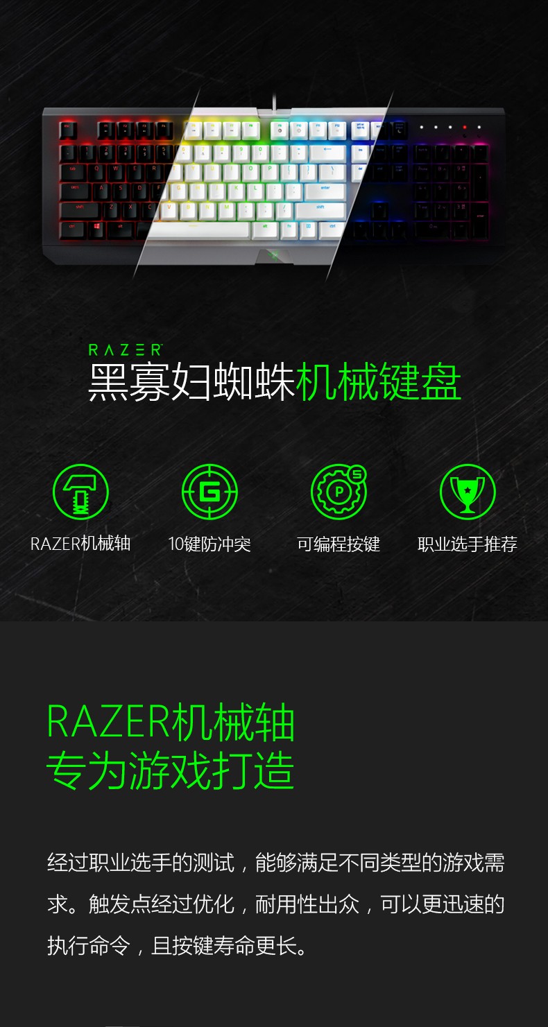 Razer雷蛇黑寡妇蜘蛛幻彩X竞技青轴吃鸡宏电竞游戏机械键盘